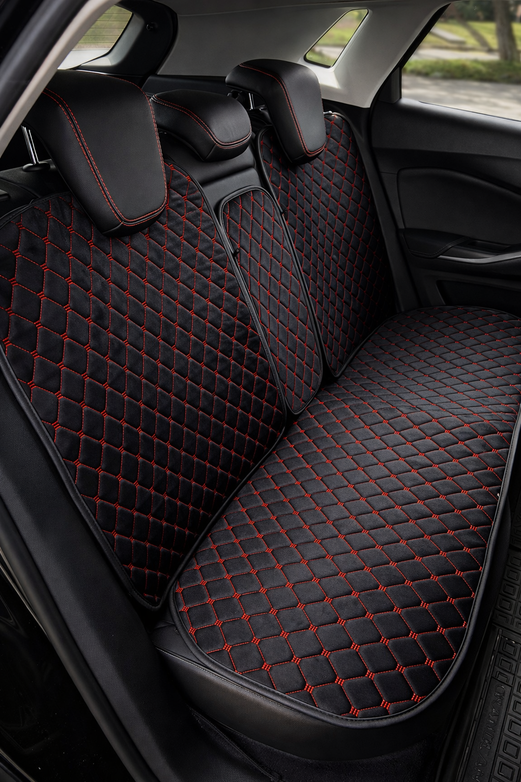 Huse auto Velur spate (negru cu nuanță roșie)